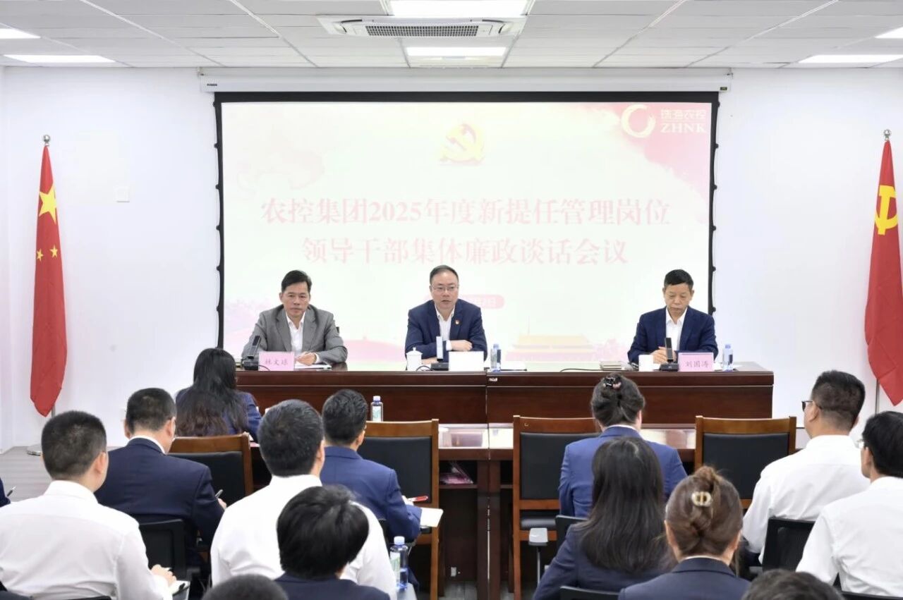 2025年12月2日,農(nóng)控集團(tuán)組織召開2025年度新提任管理崗位領(lǐng)導(dǎo)干部集體廉政談話會議。集團(tuán)黨委書記、董事長李鴻斌出席會議并講話,黨委副書記劉國濤主持會議,紀(jì)委書記、監(jiān)察專員林文球作集體廉政談話。相關(guān)部門負(fù)責(zé)人、新提任領(lǐng)導(dǎo)干部等40余人參加會議。